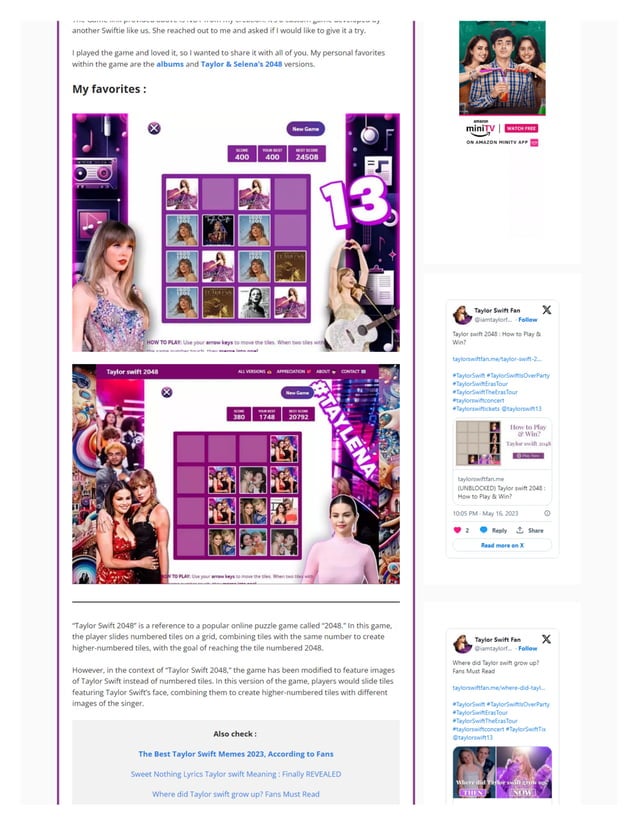 Taylor swift 2048 Game California about.me