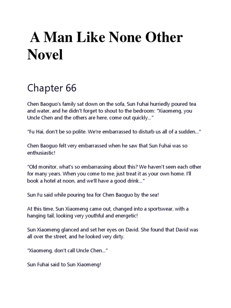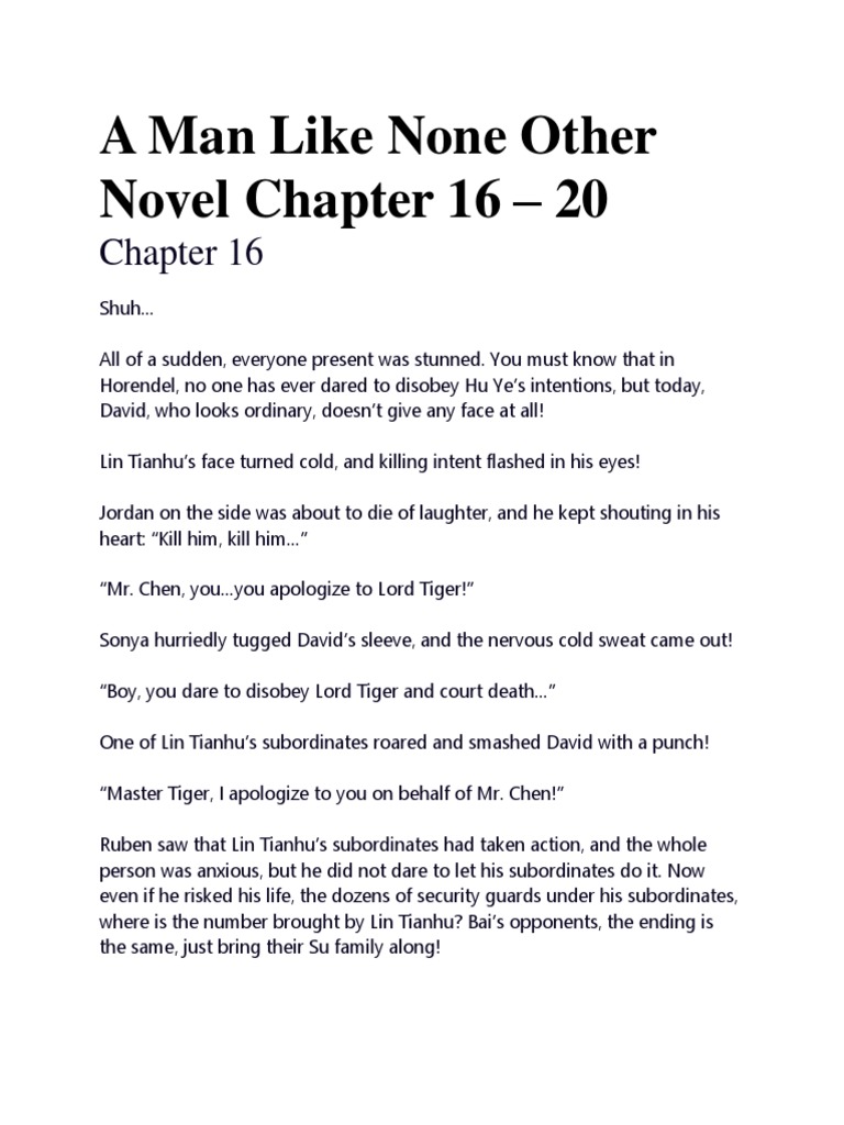 List of the most recent chapters published for the a man like none other novel. Behind him was horington prison,. Chapter 1 “i’m finally out,” jared chance exclaimed as he forcefully took a deep breath of fresh air. Chen ping didn't understand why his mother was fine when he left, why did he become like this in just three years!.