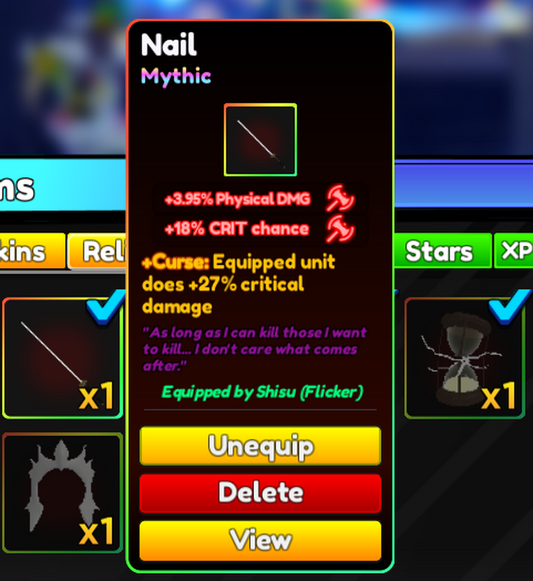 Anime Adventures Nail - If you have other characters in the team like escanor, use nail on him, if not use lostvayne. It was created on december 21, 2021 and officially released on july 3, 2022. Items are used in various ways to help boost the player and their units. Now that update 9 has added devil contracts, you can farm devil. Anime adventures is a tower defense game made by gomu. Xp items are used to be fed. They're obtainable from every game mode. Powerbackground song from ppoo ppoo ghost by somacguffin : Anime adventures has needed new relics for several updates now. 2.5k subscribers in the animeadventuresrblx.