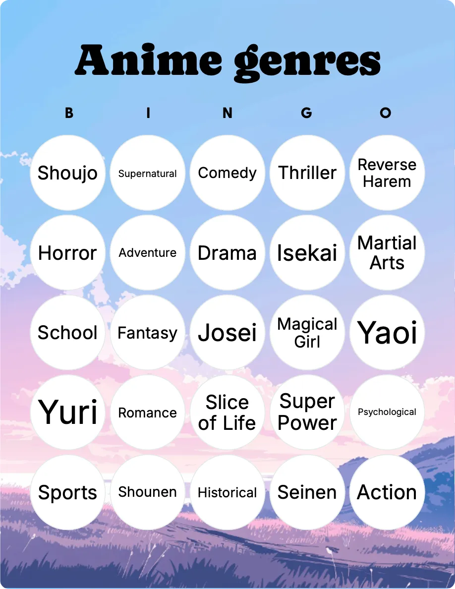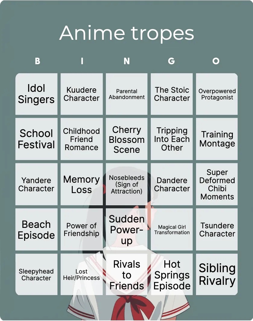 Anime Bingo Printable & Customizable Bingo Card Creator