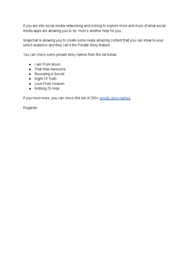 Cool private story names for Snapchat 2023 Private Story Names