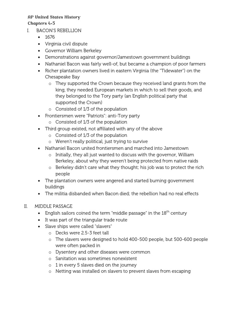APUSH Notes, Chapters 45 Slavery Age Of Enlightenment