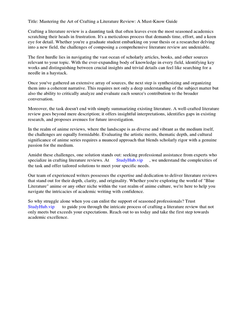 Blue Literature Anime Review PDF Literature Review