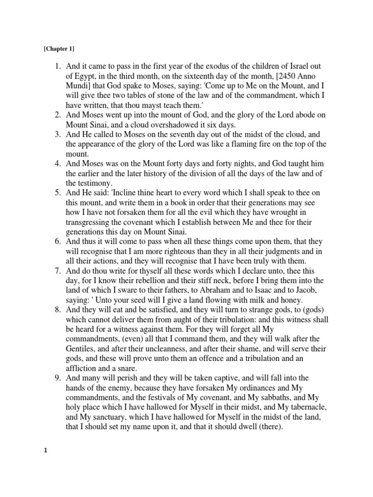 From the apocrypha and pseudepigrapha of the old testament by r.h. Chapter 1 1:1 “and it happened in the first year of the exodus of the children of israel. 2 and mosheh went up into the mount of yahweh, and the splendor of yahweh abode on mount. Read the text of book of jubilees online with commentaries and connections. This.