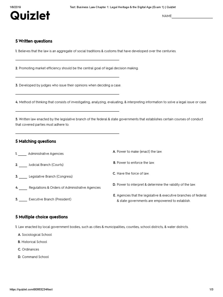 Study with quizlet and memorize flashcards containing terms like binding authority, liability,. Business law chapter 1 quiz for 11th grade students. Find other quizzes for business and. Study with quizlet and memorize flashcards containing terms like laws, primary laws,. Study with quizlet and memorize flashcards containing terms like what is a law?, business.