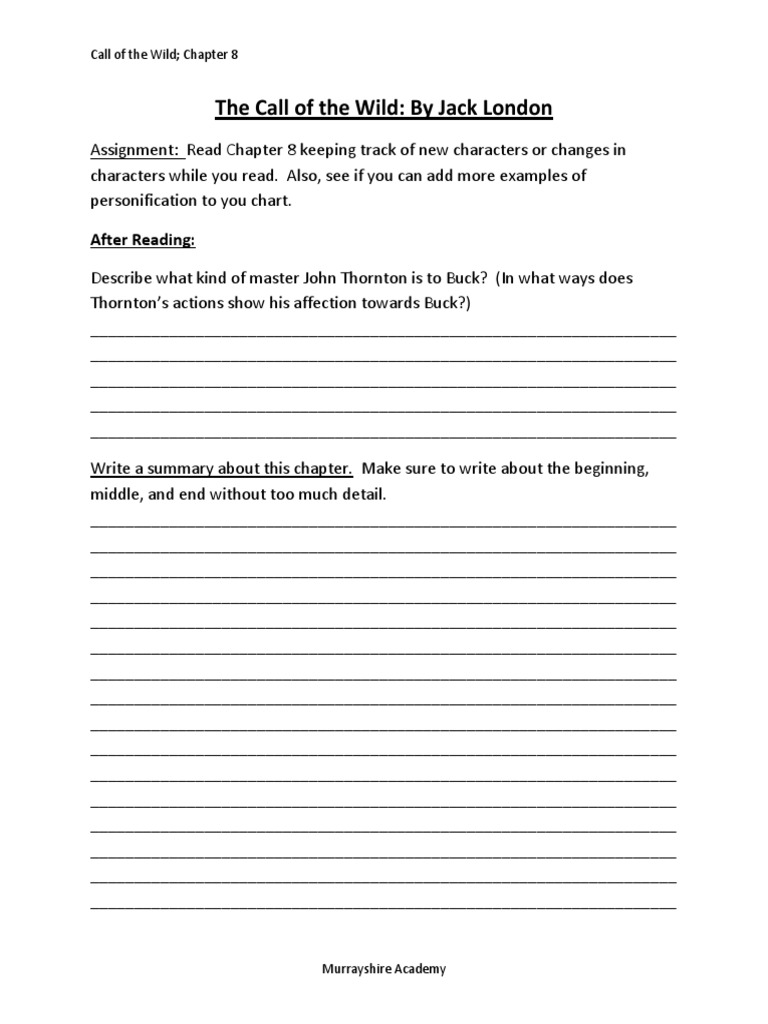 Call Of The Wild Chapter 3 Worksheet Pdf
