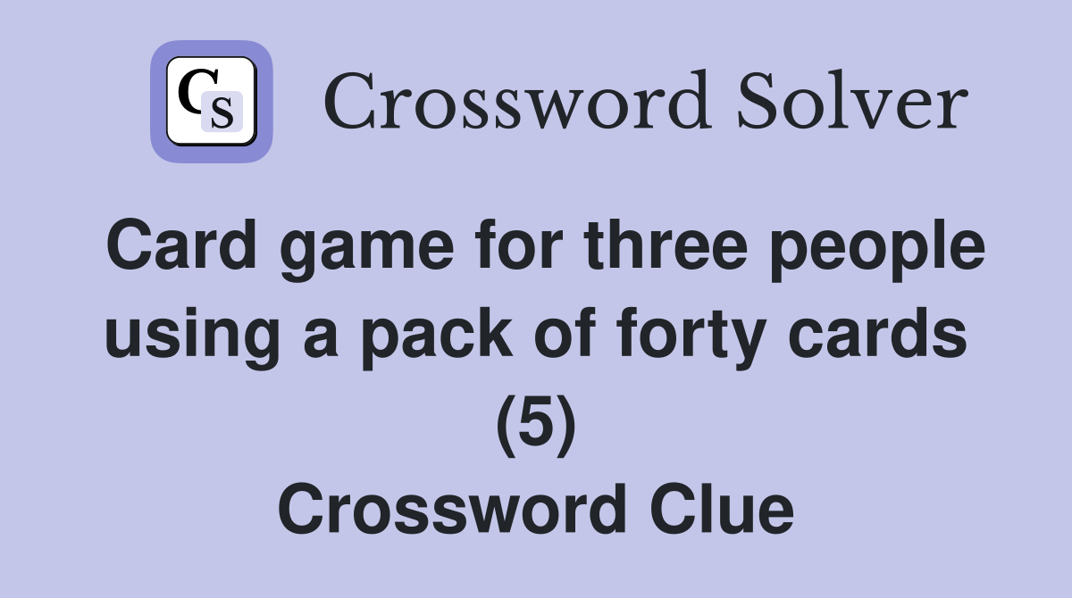 The crossword solver found 30 answers to card game for three, 3 letters crossword clue. The crossword solver finds answers to classic crosswords and cryptic crossword puzzles. Here are all the possible answers for card game for three crossword clue which contains 4 letters. There are related clues (shown below). This clue was last spotted on december 10 2024 in.