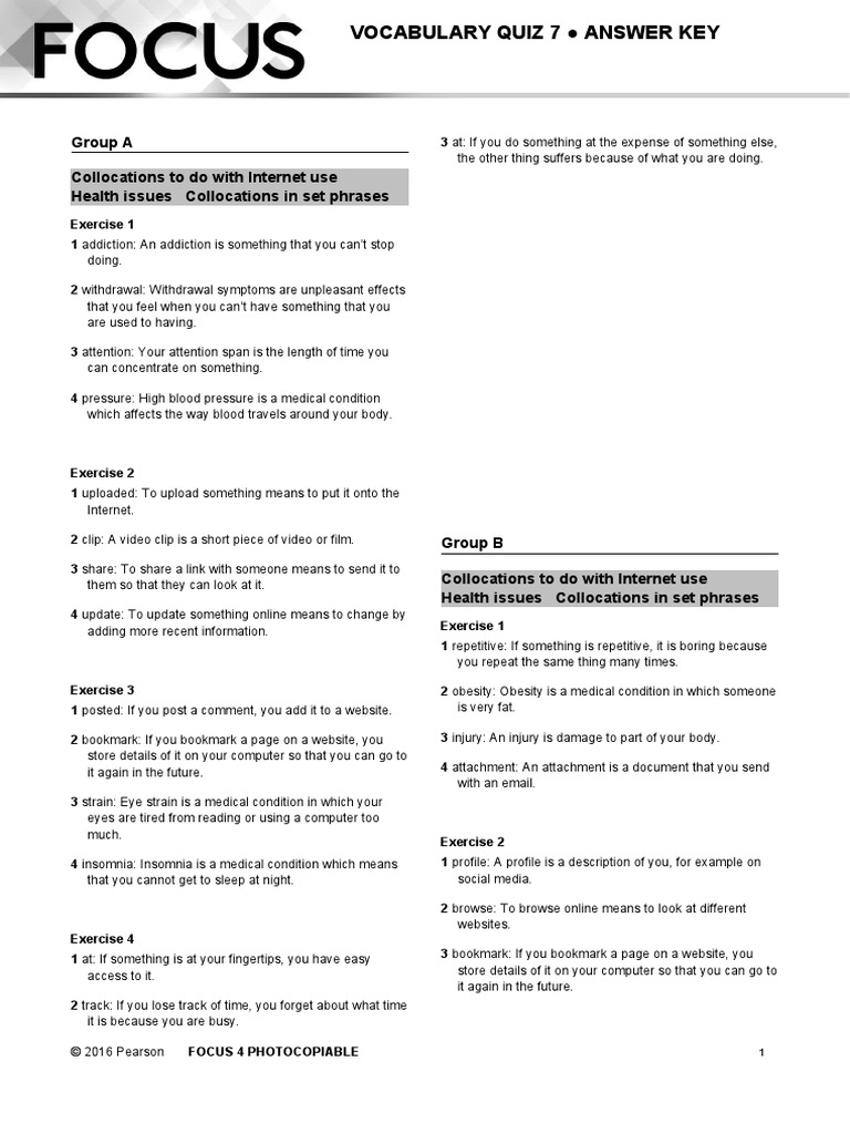 Focus On Vocabulary 1 Student Book Answer Key.