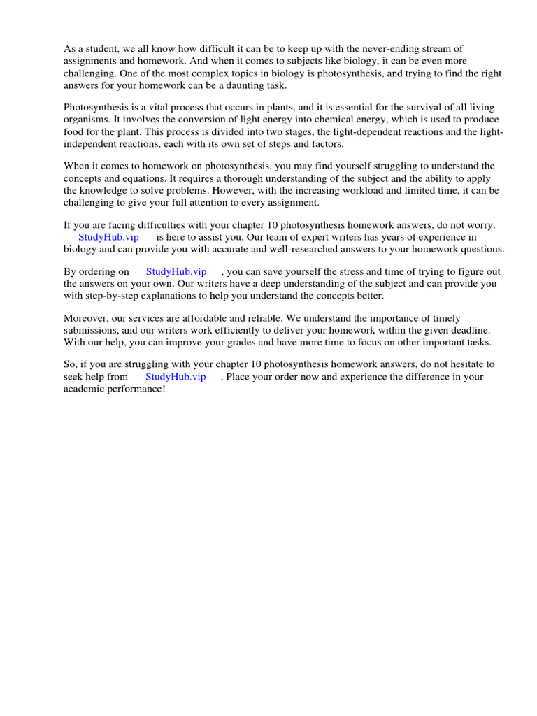 Chapter 10 Photosynthesis Homework Answers PDF Photosynthesis Biology