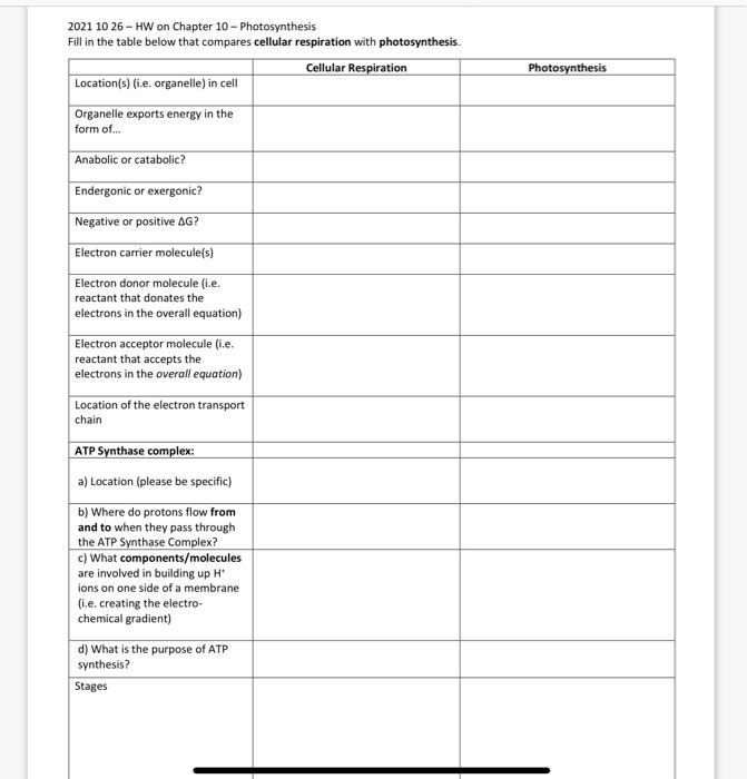 Solved Photosynthesis 2021 10 26HW on Chapter 10