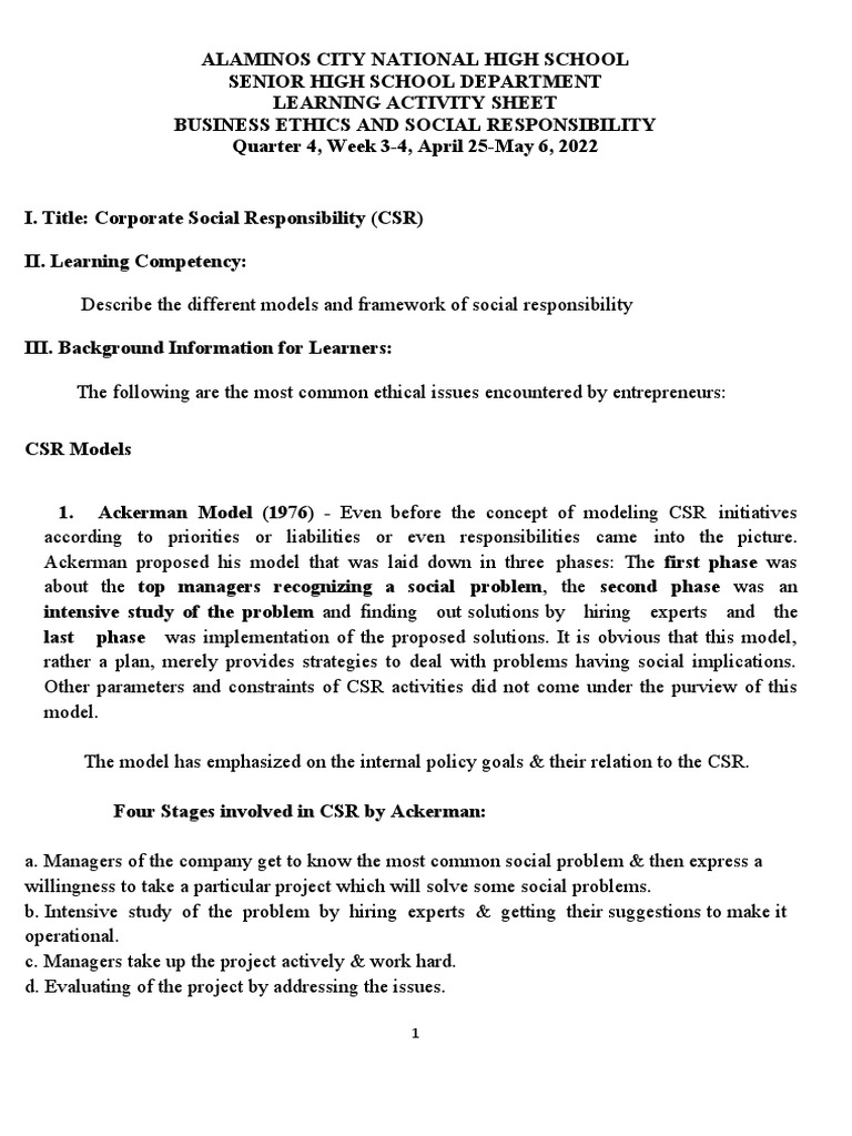 Chapter 4 Business Ethics And Social Responsibility Worksheet Answers - This chapter discusses business ethics and social responsibility. Doing well by doing good • a code of ethics can cover issues such as:. Which might indicate that a company is run according to ethical standards? • each business has its own code of ethics. A systematic evaluation of how well a firm is meeting its ethics and social responsibility. Principles of business ethics 2 corporate governance and corporate social. Business ethics and social responsibility: