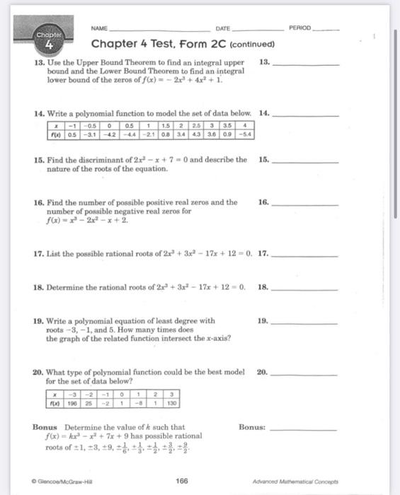 Solved PERIOD NAME DATE Chapter 4 Chapter 4 Test, Form 2C