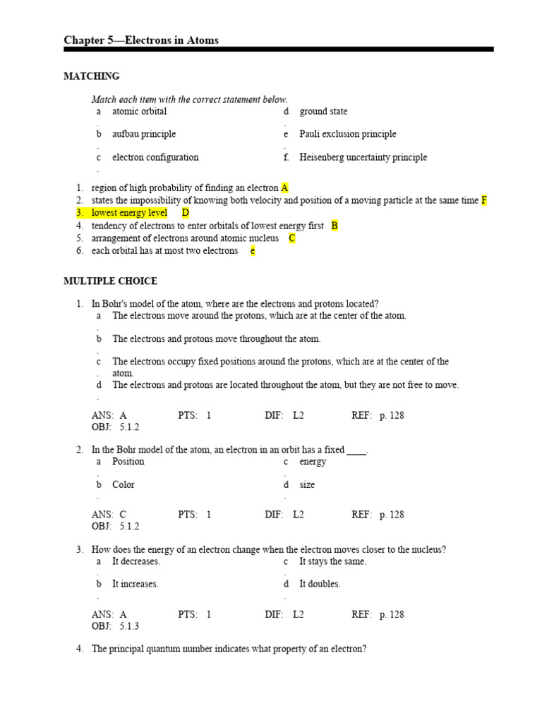Chapter 5 Electrons In Atoms Answer Key - O 0 0 o o 3 0 o b 0 o e z o e e 0 g o o o 0 g 0 o > e 0 0 0 o > 0 o 0 o 0 o 0 o o o 0 0 0 0 o o o o 0. According to bohr's atomic model, the smaller an electron's orbit, the ______ the atoms energy. Electrons in atoms 5.1 properties of light check your understanding 1. Electrons exist in fixed pathways (orbits) around the nucleus. Electrons in atoms 5.1 properties of light practice questions use the. Electrons generally found in the outermost s & p sublevels of an atom; Get the answer key for chapter 5 on electrons in atoms, including practice problems and. Electrons can jump from one level.