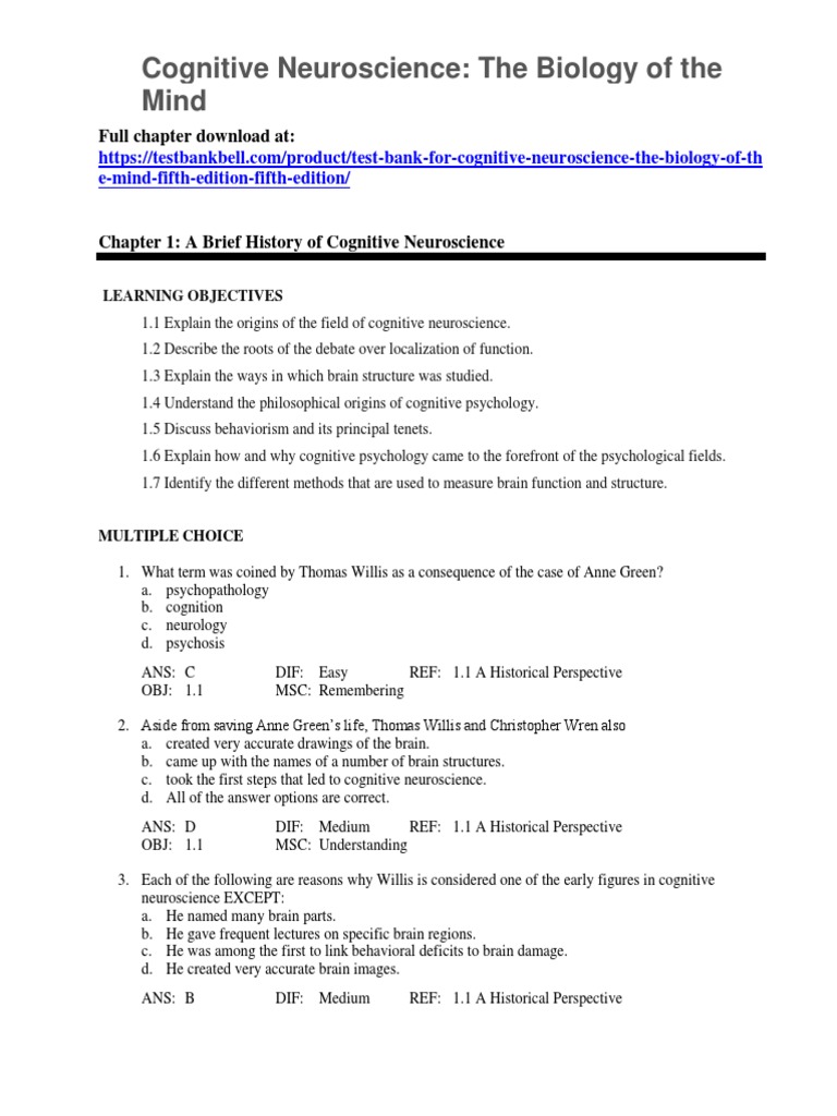 Test Bank For Cognitive Neuroscience The Biology of The Mind Fifth