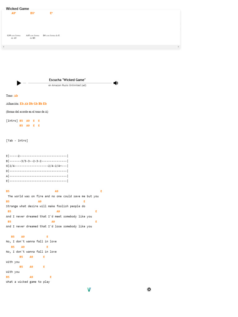 You can find and view more than 1,000,000 chords or tabs. Download midi and pdf files for different parts. Is this strumming pattern correct? We have an official wicked game tab made by ug professional guitarists. Play along with original audio.