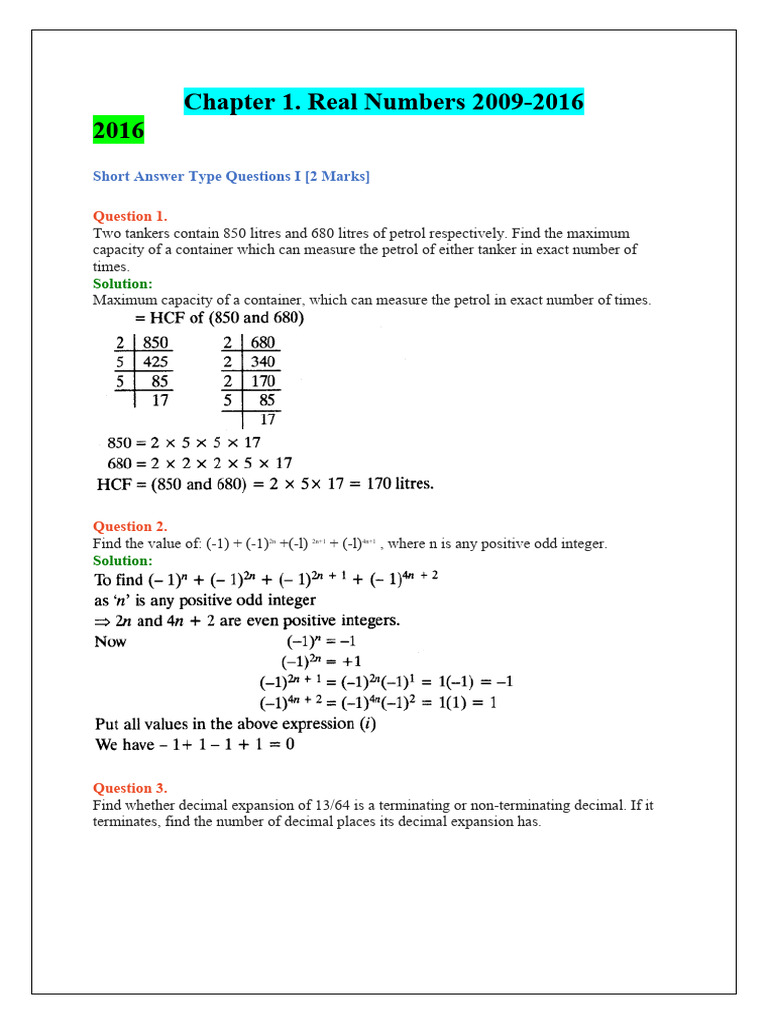 Chapter 1 Real Numbers Answers 20092016 PDF