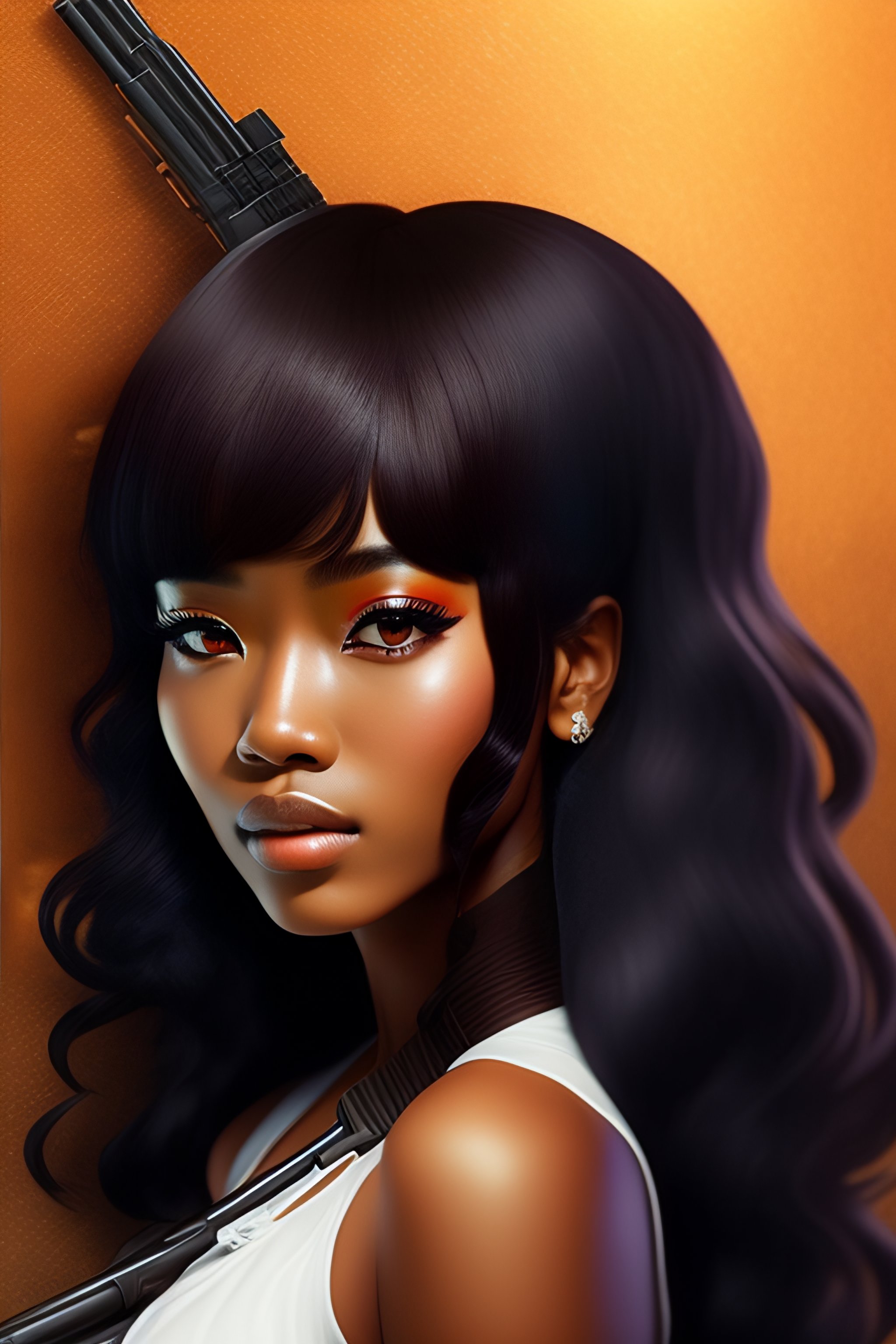 Japanese animeinspired male character with dark brown skin and curly