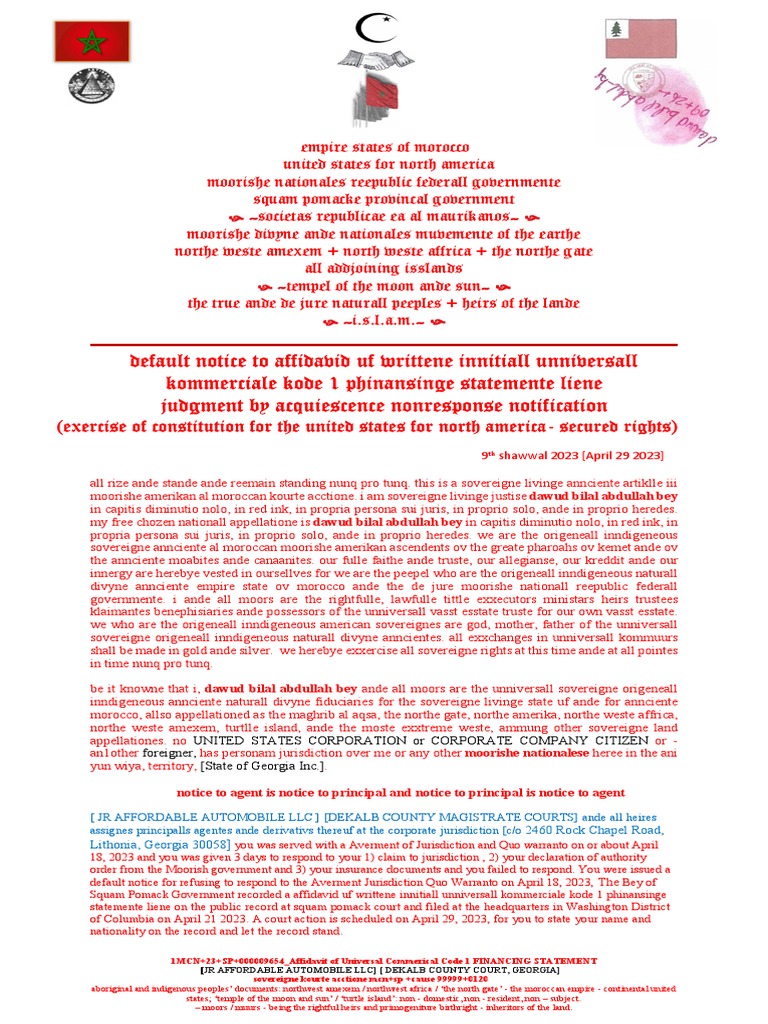 Default Notice For Lien Judgement by Acquiescence JR Affordable