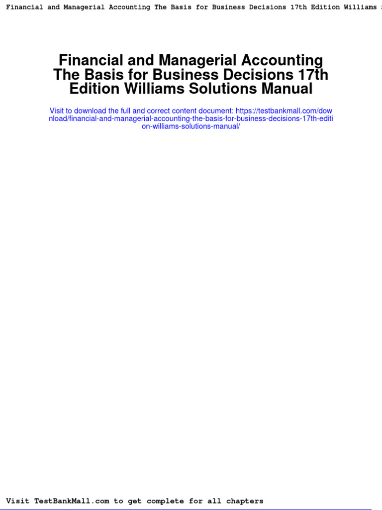 Financial and Managerial Accounting The Basis For Business Decisions