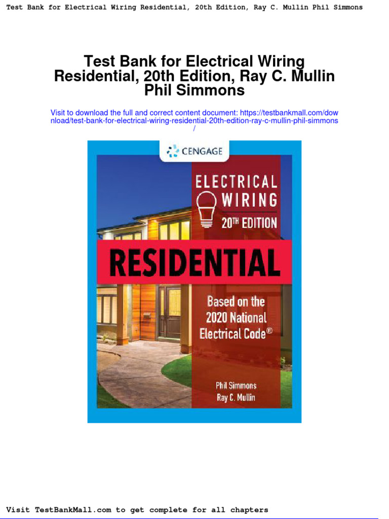 Test Bank For Electrical Wiring Residential 20th Edition Ray C Mullin