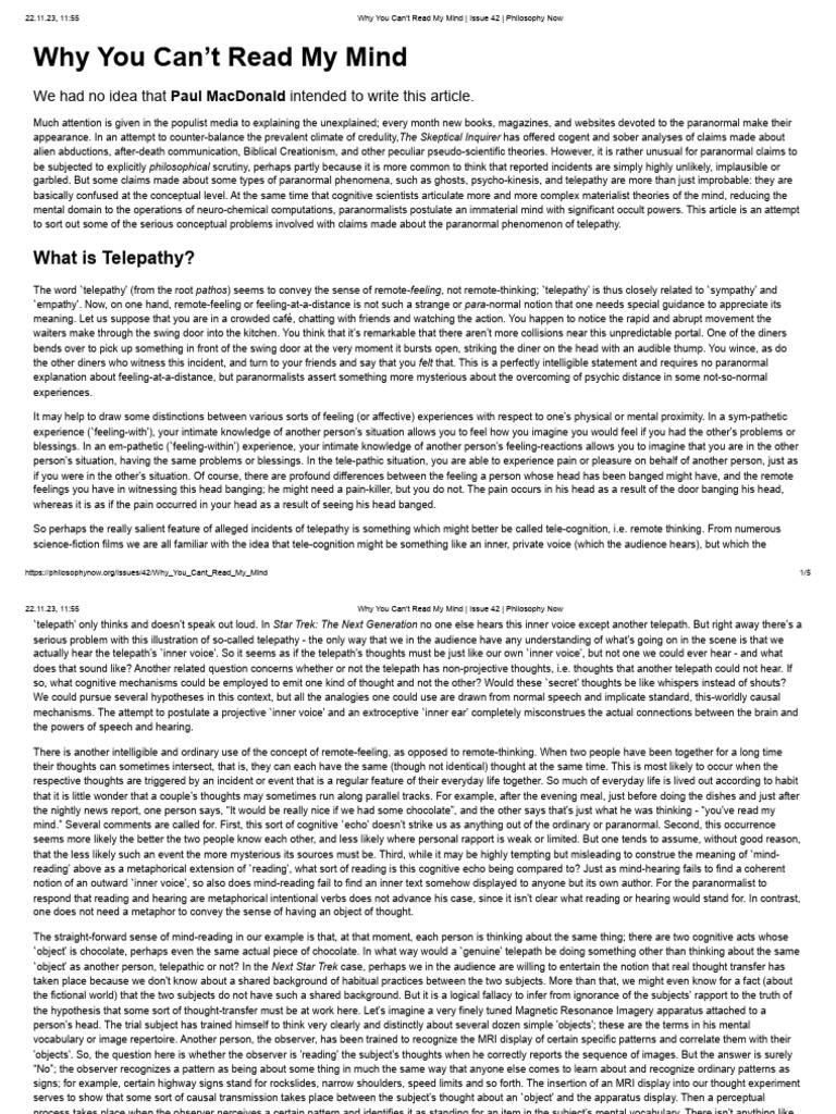 Why You Can't Read My Mind Issue 42 Philosophy Now Download Free
