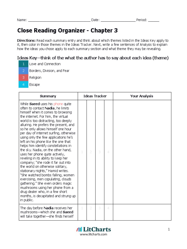 Eren Ozden Exit West Chapter 3 Reading Organizer PDF