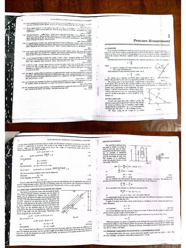 Fluid Mechanics Chapter 2 PDF Pressure Pressure Measurement