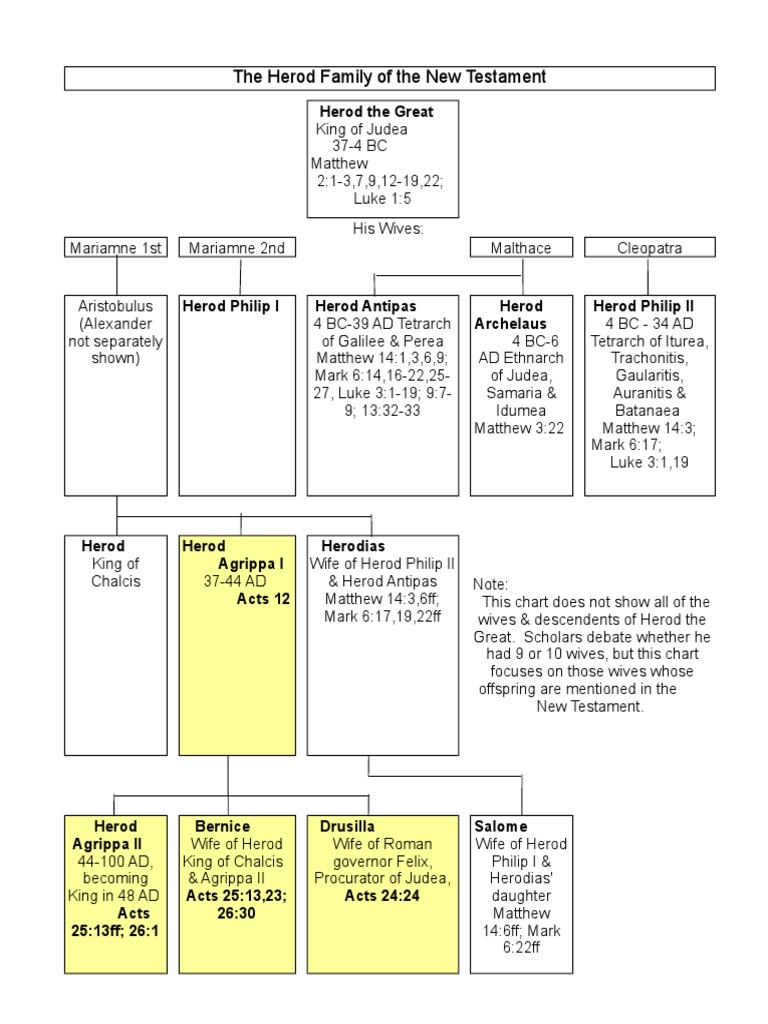 When herod died in march of 4 bc, he was succeeded by archelaus. Four sons of herod the great are named in the new testament: The details of his biography can. The document provides a genealogical chart and descriptions of the family relationships of herod the great and his descendants. Herod the great (born 73 or 74 bce, died 4.