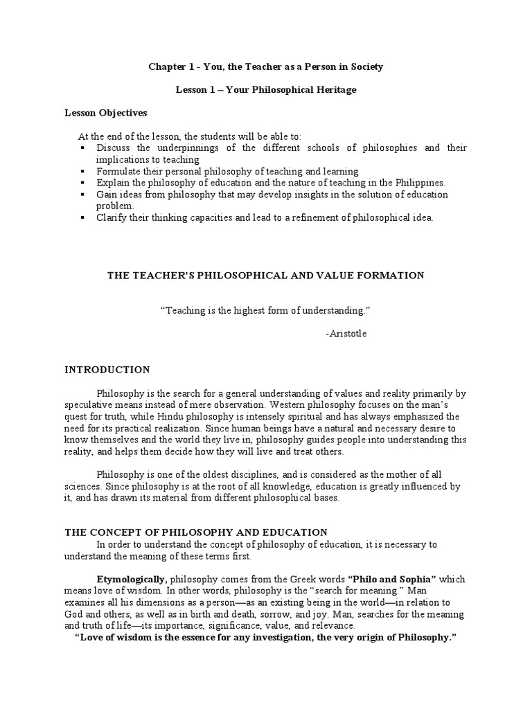 Chapter 1 Lesson 1 Your Philosophical Heritage PDF Curriculum