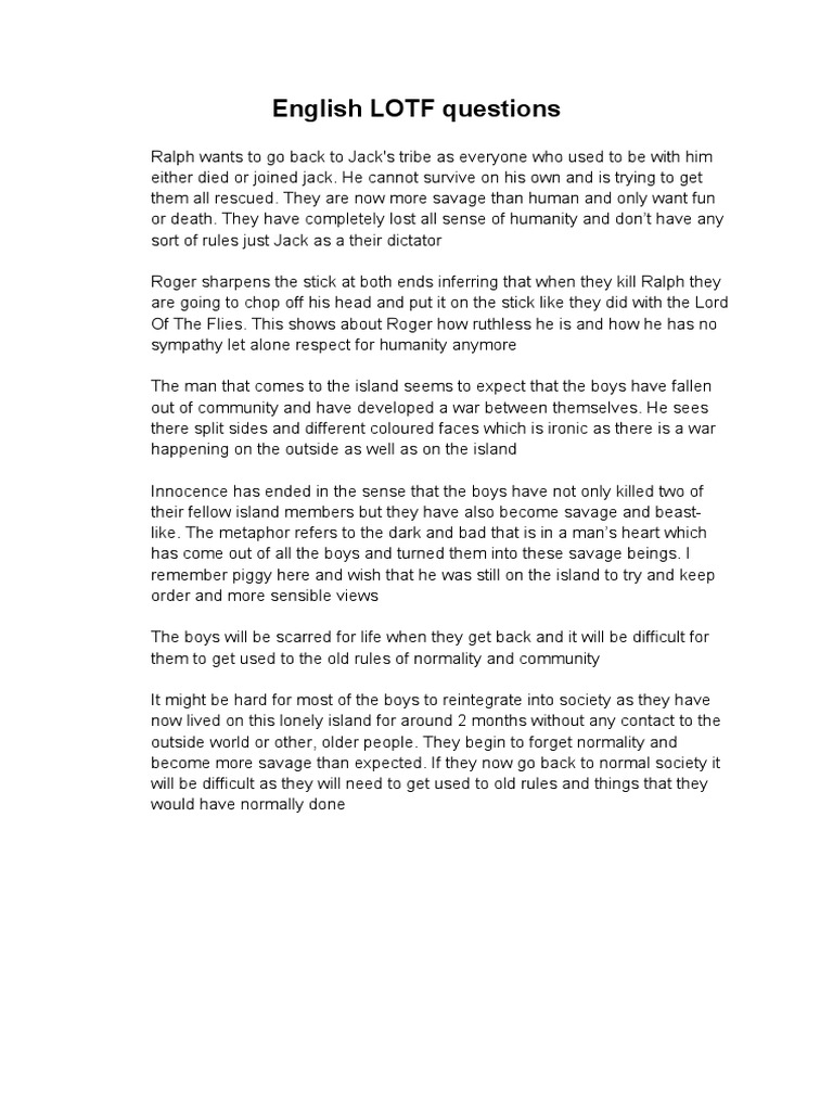 Need help with chapter 4 in william golding's lord of the flies? Free summary and analysis of chapter 4 in william golding's lord of the flies that won't make you snore. When roger and maurice, two biguns, spot henry, percival, and johnny—three littluns—building sand castles, they take great pleasure in destroying. Not only does there seem to a split of.