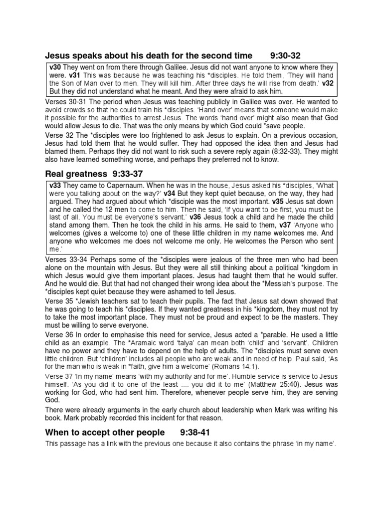 Mark Chapter 9b PDF Disciple (Christianity) Gospel Of Mark