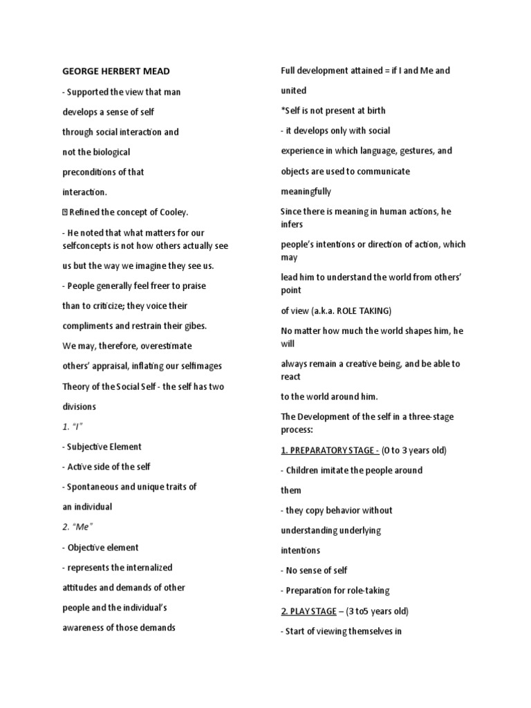 Herbert Mead Play Stage PDF Intention Self