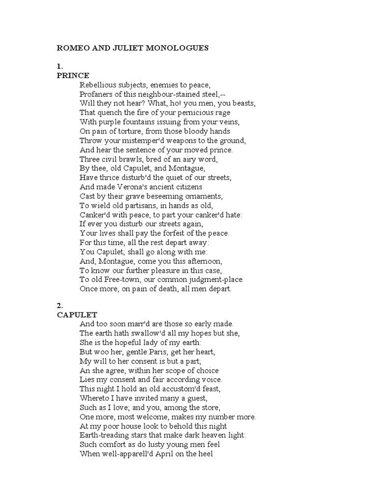 Romeo and Juliet Monologues 1. Prince PDF Characters In Romeo And