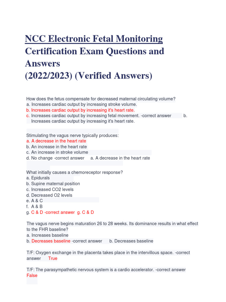 NCC Electronic Fetal Monitoring Certification Solved Questions 2023