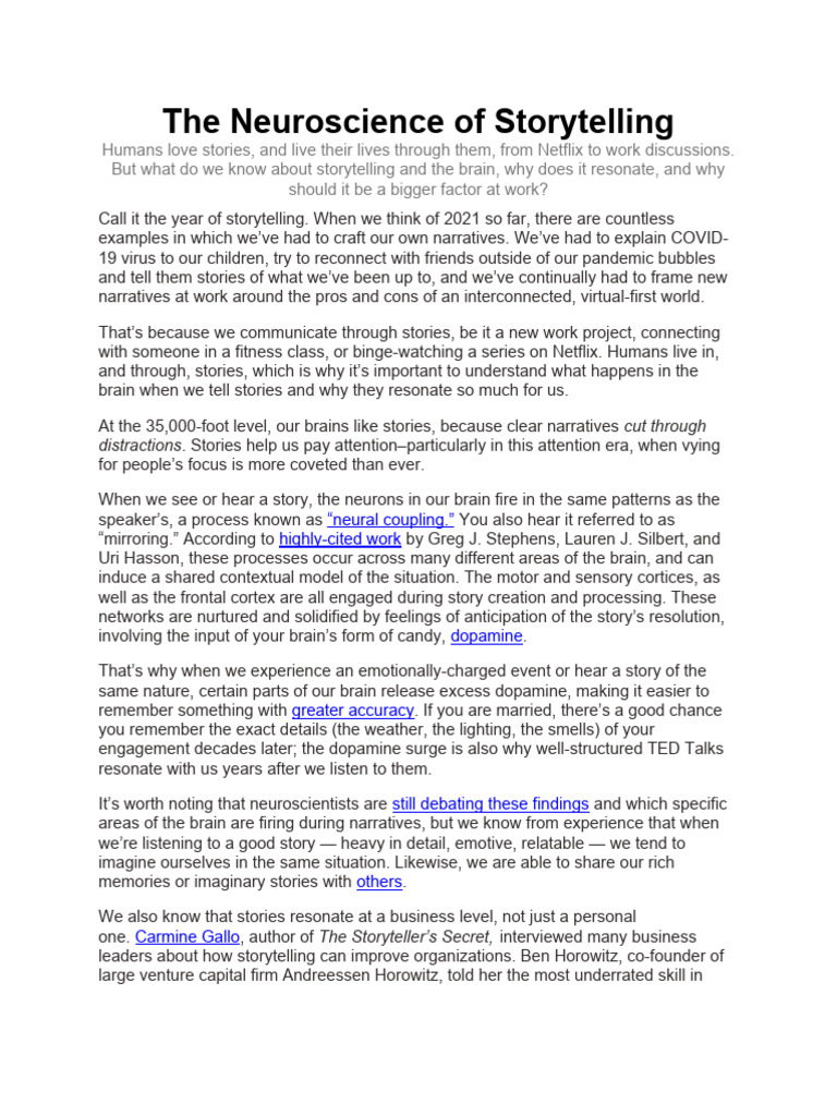 The Neuroscience of Storytelling PDF Storytelling Brain