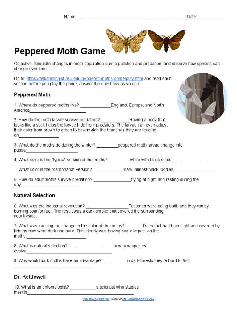 Kettlewell placed light and dark moths on the trunks of trees where he could observe them. Simulate changes in moth population due to pollution and. This comprehensive guide provides answers and. Peppered moth game answer key: