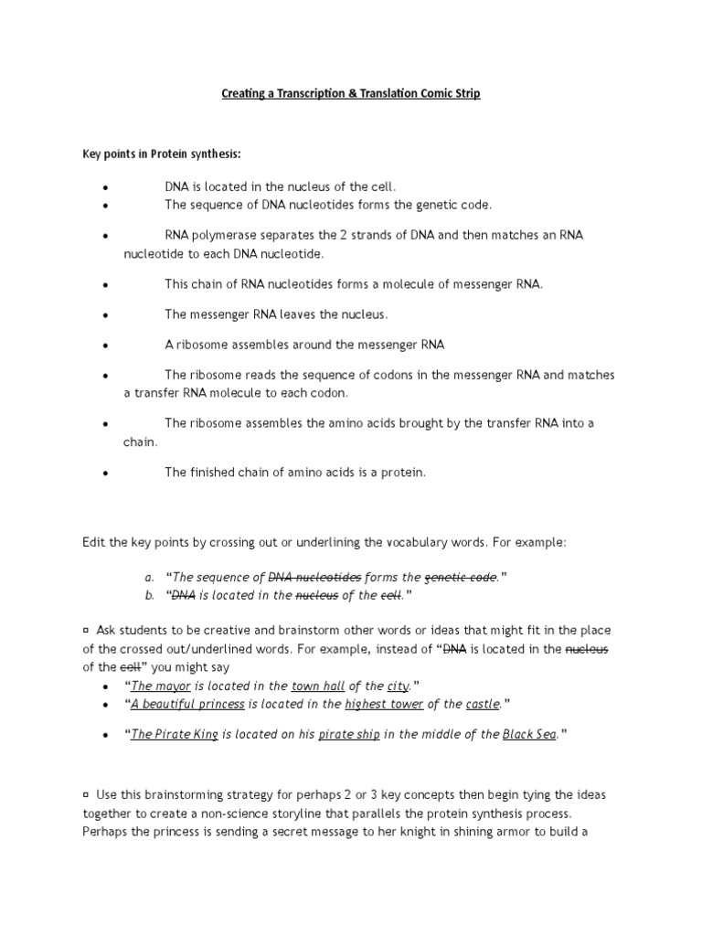 Protein Synthesis Comic Strip PDF