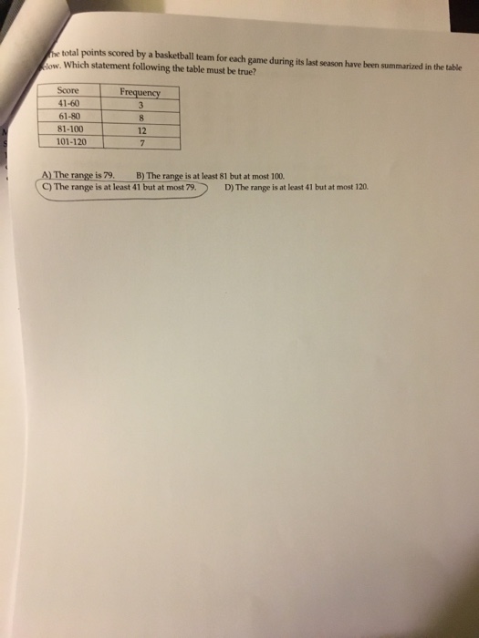 Solved The total points scored by a basketball team for each