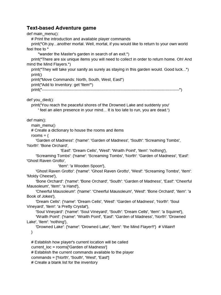 TextBased Adventure Game Python PDF