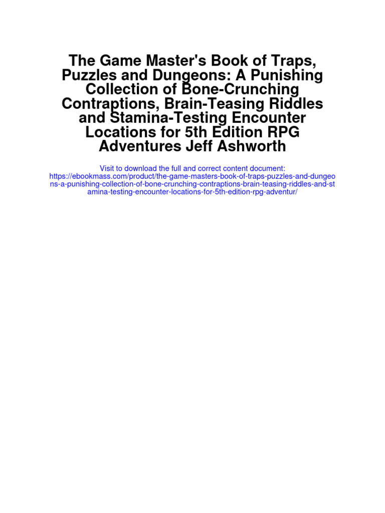 The game master's book of traps, puzzles, and dungeons offers a comprehensive collection of. The game master's book of traps,. The game master’s book of traps, puzzles and dungeons 7 what this book is the.