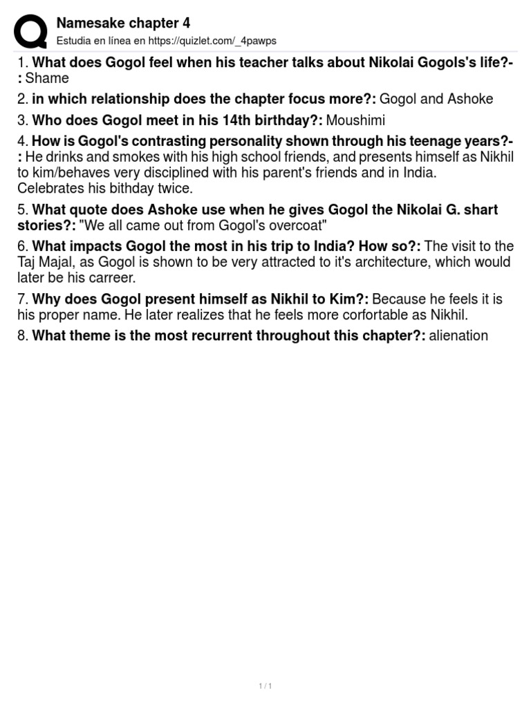 Free summary and analysis of chapter 4 in jhumpa lahiri's the namesake that won't. Check out our revolutionary side. Moushumi is a shy girl with an embarrassing british accent, and all she wants to do is sit and. “1982” for gogol’s 14th birthday, he has two parties: