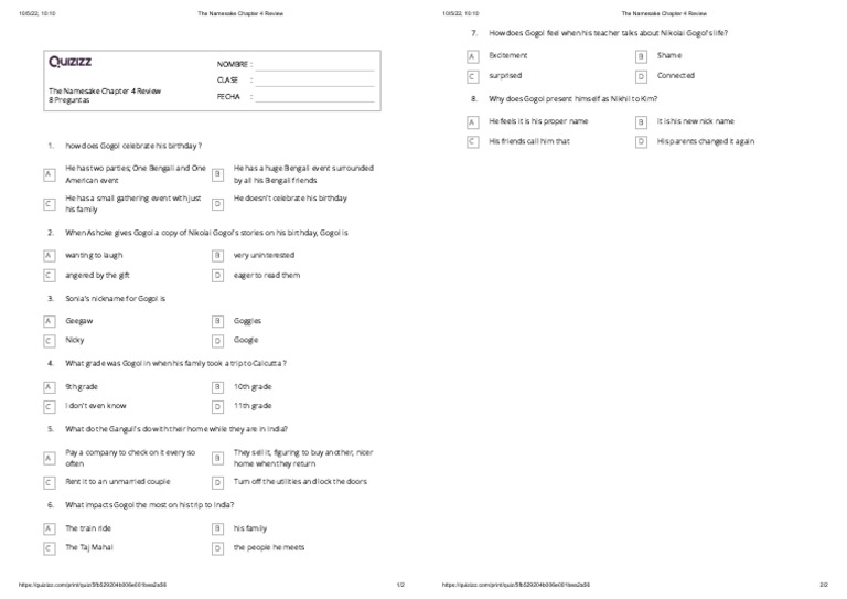 Namesake Chapter 4 Activiy PDF