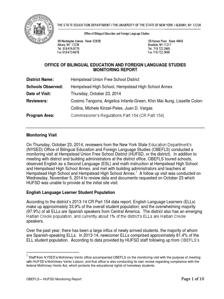Hempstead Monitoring Report Download Free PDF English As A Second