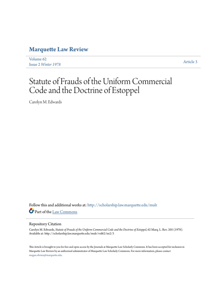 Statute of Frauds of The Uniform Commercial Code and The Doctrine