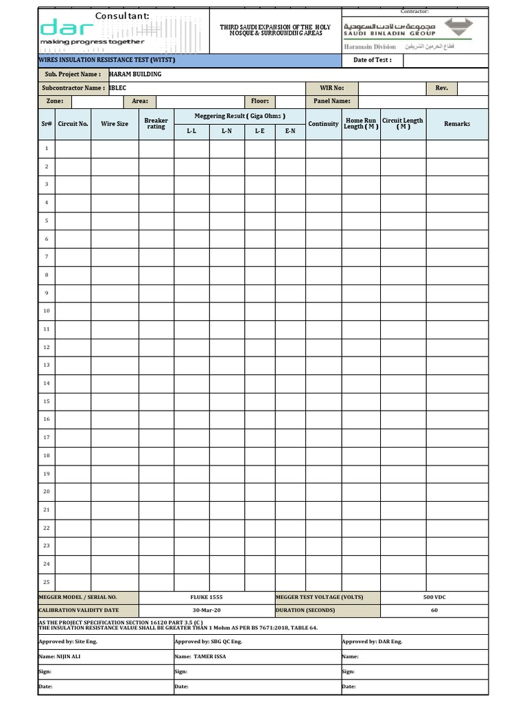 Megger Test FormNew PDF Electrical Resistance And Conductance
