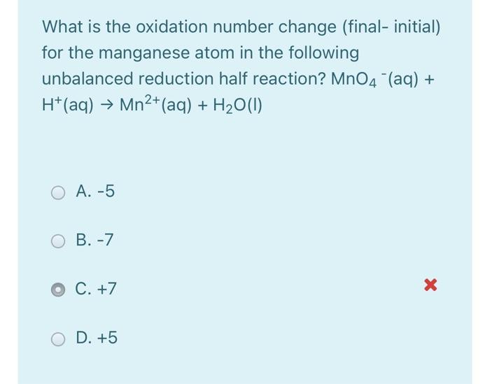 Solved Manganese has the oxidation number of +7 in X A.