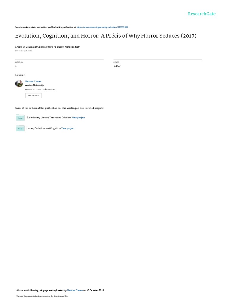 (PDF) Evolution, Cognition, and Horror A Précis of Why Horror Seduces