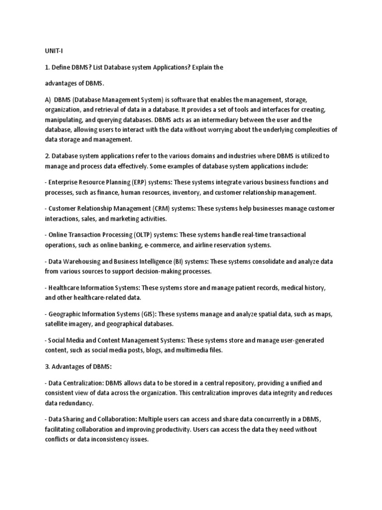 Unit 1 Answers PDF Databases Networking