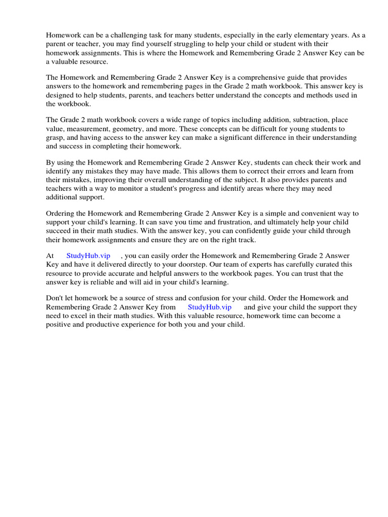 Homework and Remembering Grade 2 Answer Key PDF Books Essays